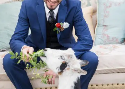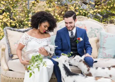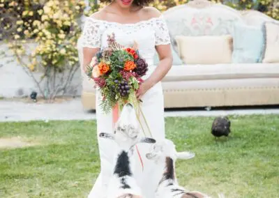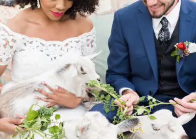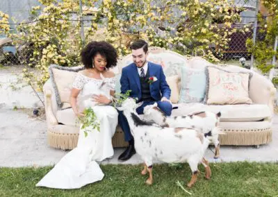 - Pick wedding venues that have committed to low-impact or green weddings. Take The Doyle in downtown Las Vegas for instance. Built in 1949, The Doyle is an industrial space with rustic, original wood trusses, white washed walls and a large courtyard. The Doyle has a comprehensible sustainability plan. One hundred percent of captured food is reused. The Doyle has a small micro-farm behind the building complete with ducks, rabbits, goats, pigs, guinea fowl, chickens and worms. The leftover greens are fed to the rabbits and goat, food waste to the pigs, chickens and ducks and dressings and sauces go to the worms. Any greenery used is recycled in compost bins or through vermicomposting, and floral arrangements are consumed by the goats or used for paper making. Aluminum cans and plastic bottles are collected and donated to the homeless to sell for profit and any cardboard waste is used in artwork by one of The Doyle’s owners, Steven Spann.