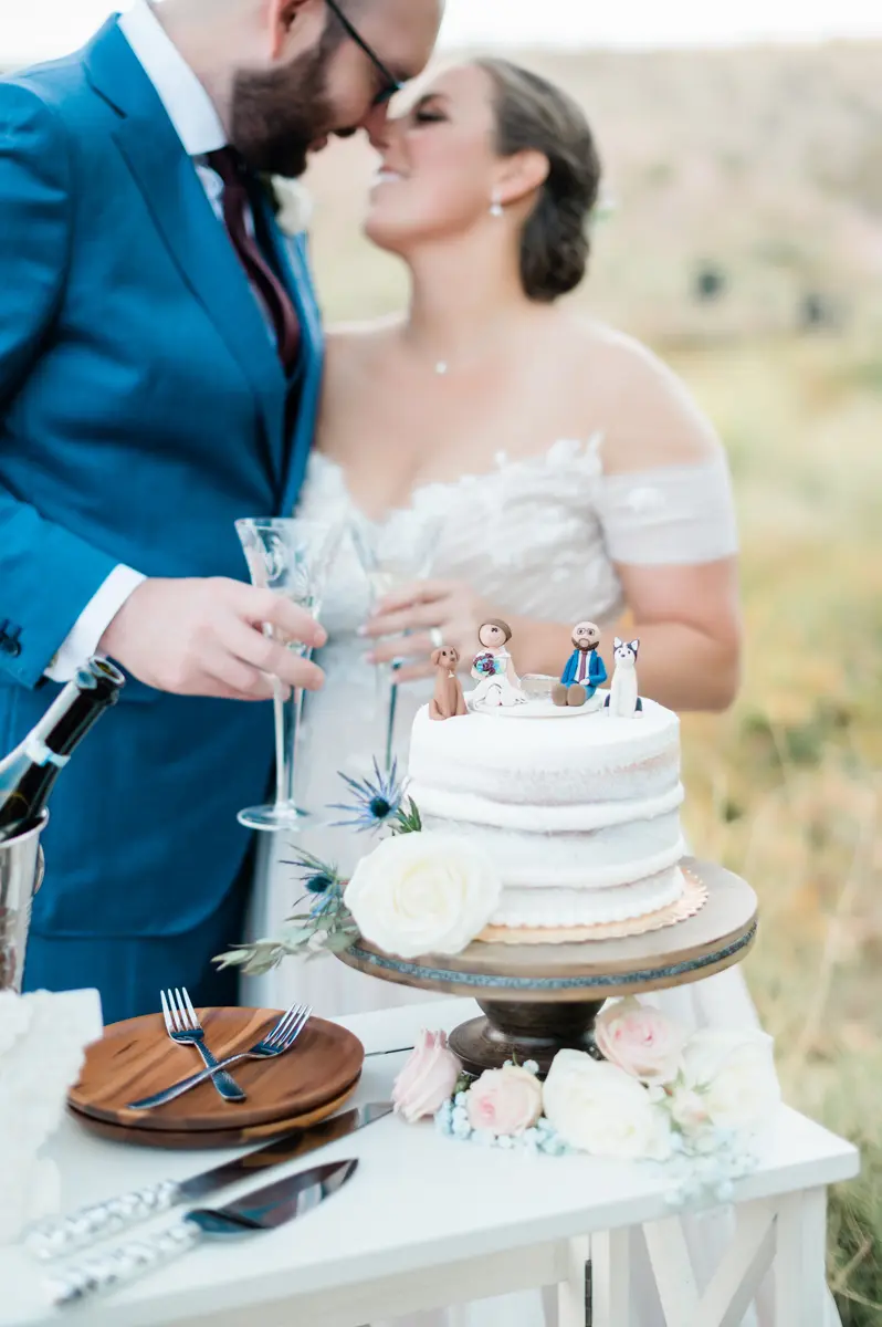 Wedding cake toppers with dogs can be customized to your wedding colors, dog breed, and personal style.