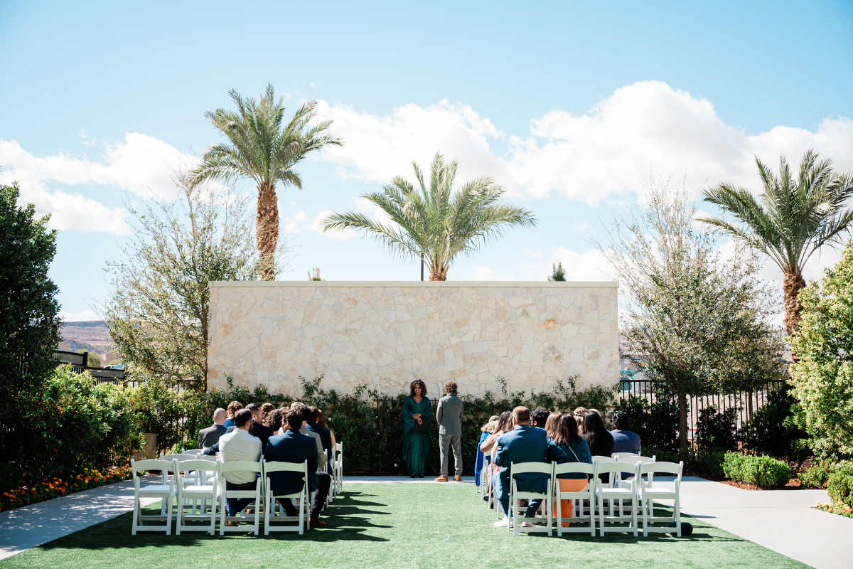 The majestic Mediterranean-style resort is a stone’s throw from Red Rock Canyon and it’s outdoor adventure possibilities, and just 20 minutes from the Strip. Couples choose it for a classic, traditional-style wedding vibe that’s both affordable and intimate. A selection of photogenic spots, like water features, palms and manicured lawns, offer couples flexibility and beauty.