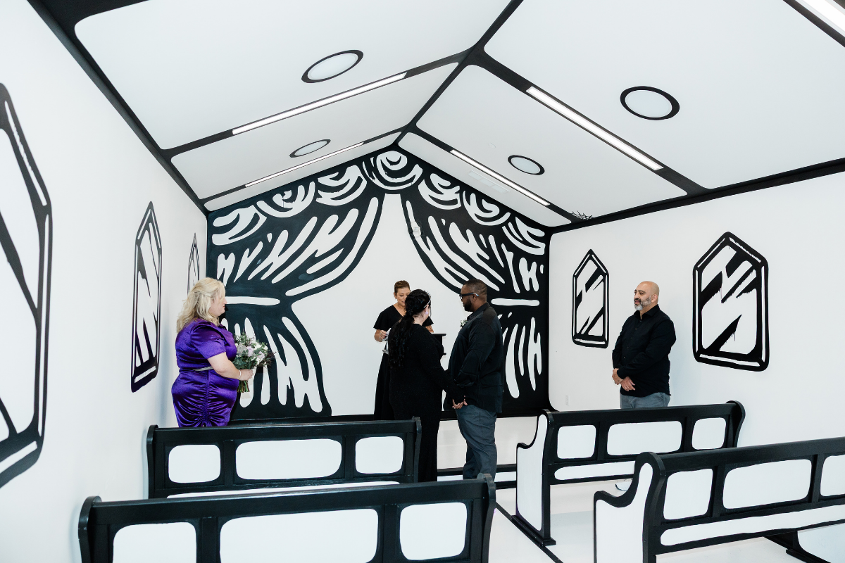 It’s back! The one-time pop-up chapel inside the Palms Casino is now a permanent option for couples seeking an ultra instagramable wedding ceremony. The intimate space was designed by Guatemalan American visual artist Joshua Vides. You’ve never seen a wedding venue anything like this before!