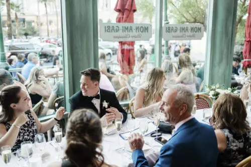 Their day began with a breathtaking outdoor ceremony surrounded by Red Rock’s iconic views, where their on-site host, Liz, ensured everything flowed seamlessly. Guests were treated to live music, elegant floral arrangements, and a picture-perfect setting that exceeded expectations. The celebration continued with a Gather After reception featuring custom décor, dining, and a joyful atmosphere that brought everyone together.